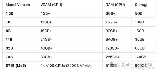 下面重点讲下在一台电脑上部署,局域网下的电脑都能够使用。deepseek还是很吃硬件配置的,办公室的电脑不是每台都能达标,也没有必要每人都部署一遍。配置要求如下: