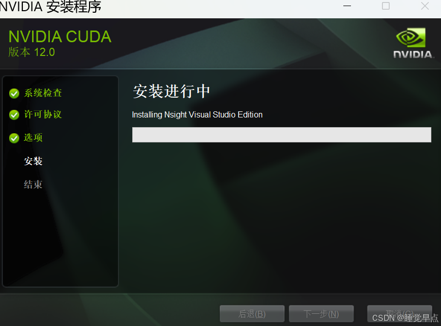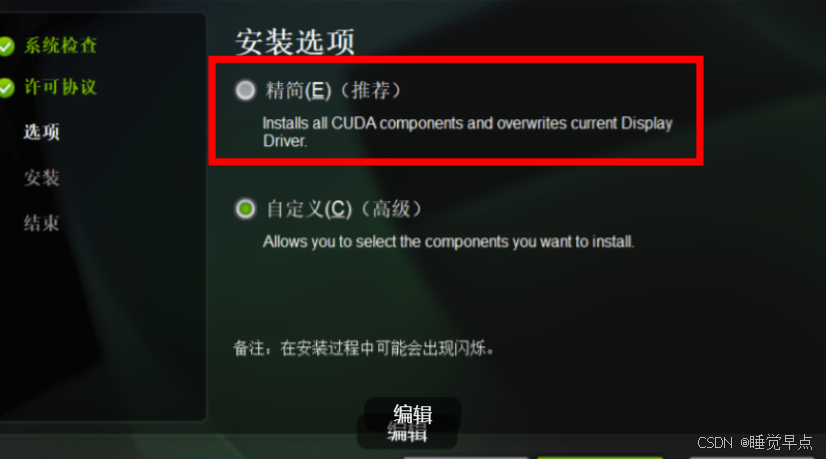在此之前我安装的cuda12.3,精简安装时总是重启安装失败,就换了一个版本低的cuda12,这次成功。