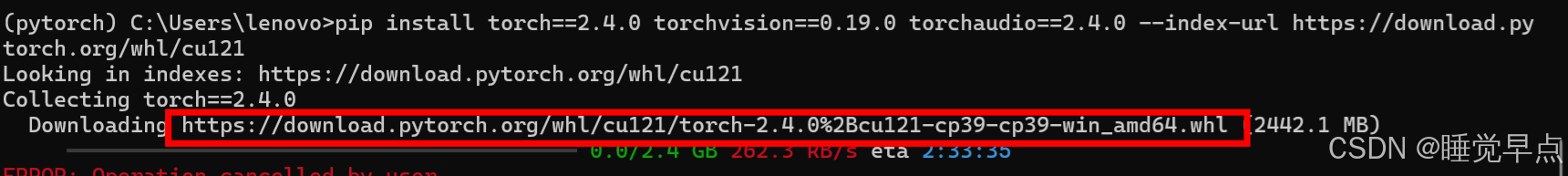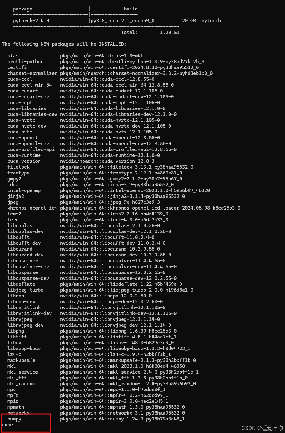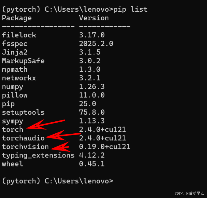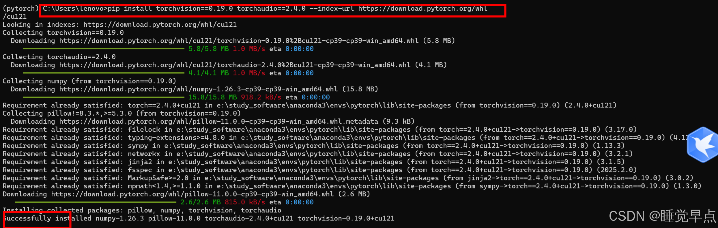 其中,torch已经安装好,可以删除上述命令中的“torch==2.4.0 ”,在命令行执行以下命令。