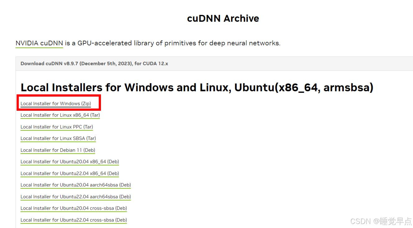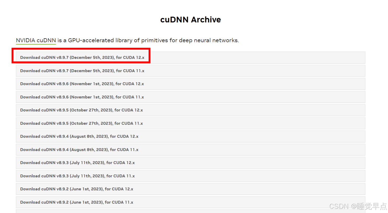 注意:CUDA的版本要与cuDNN版本能对应,CUDA12.0,cuDNN下载对应12.x就行。