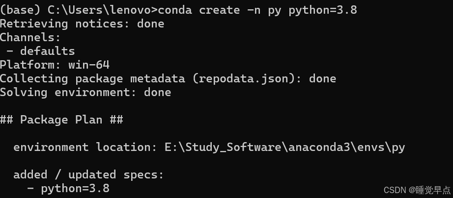 (1)打开Anaconda Prompt,创建虚拟环境。我的python为3.8