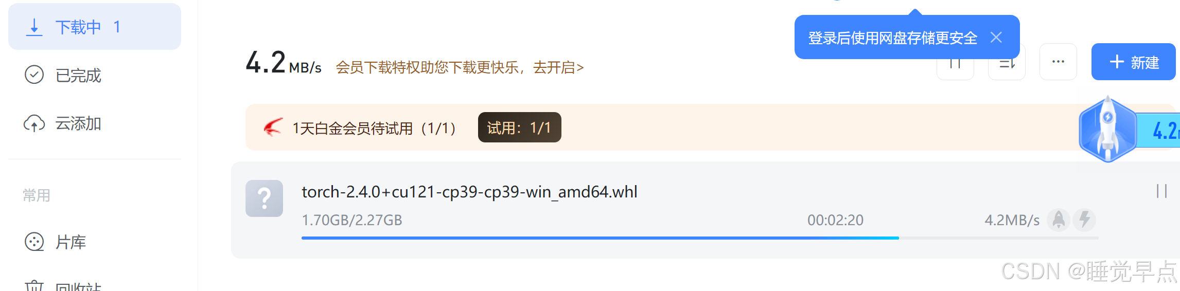 注意:根据环境选择安装包。torch-2.4.0表示Pytorch为2.4的版本,cu124表示cuda12.4,cp39表示python3.9,win_amd64表示该版本适用于 64 位的 Windows 系统。