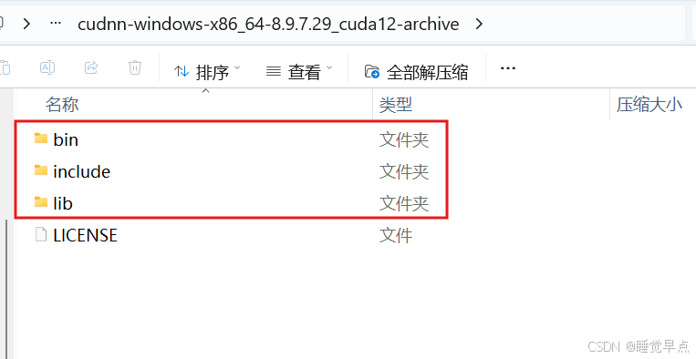 解压下载的压缩包,将这几个文件夹复制到CUDA安装路径下。