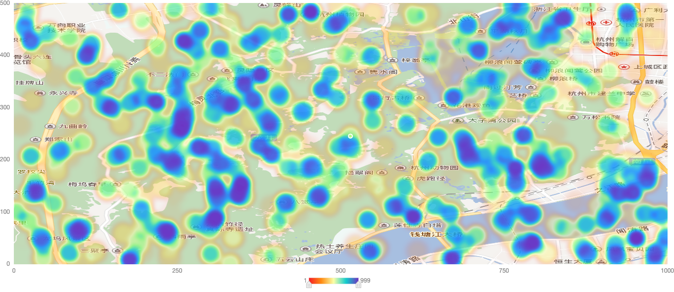 在支持的图表方面,G2Plot似乎不怎么支持地理图表,看了官网所有的示例,只有一个热力图看起来有点关系。