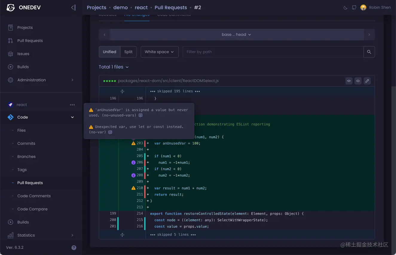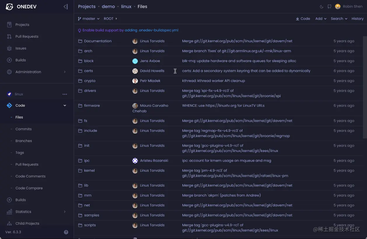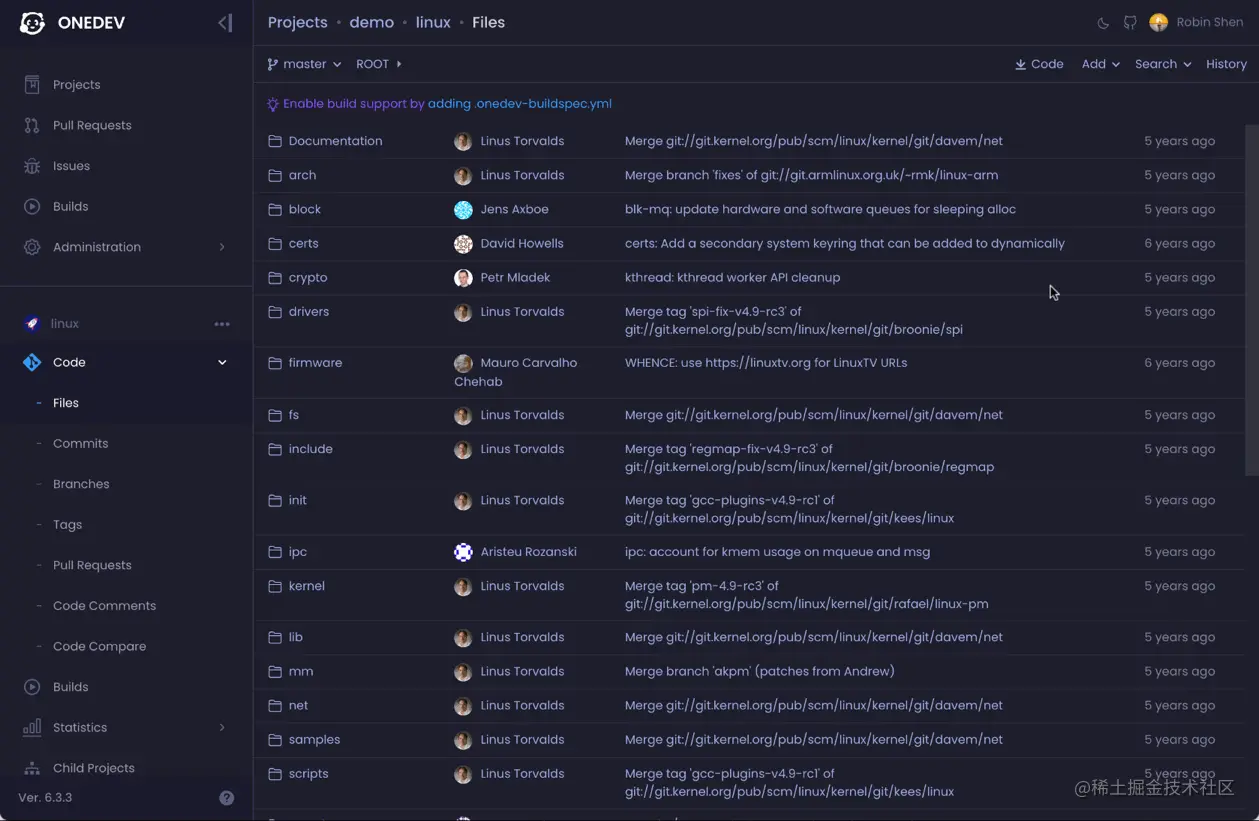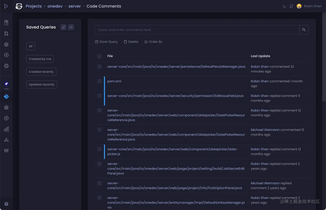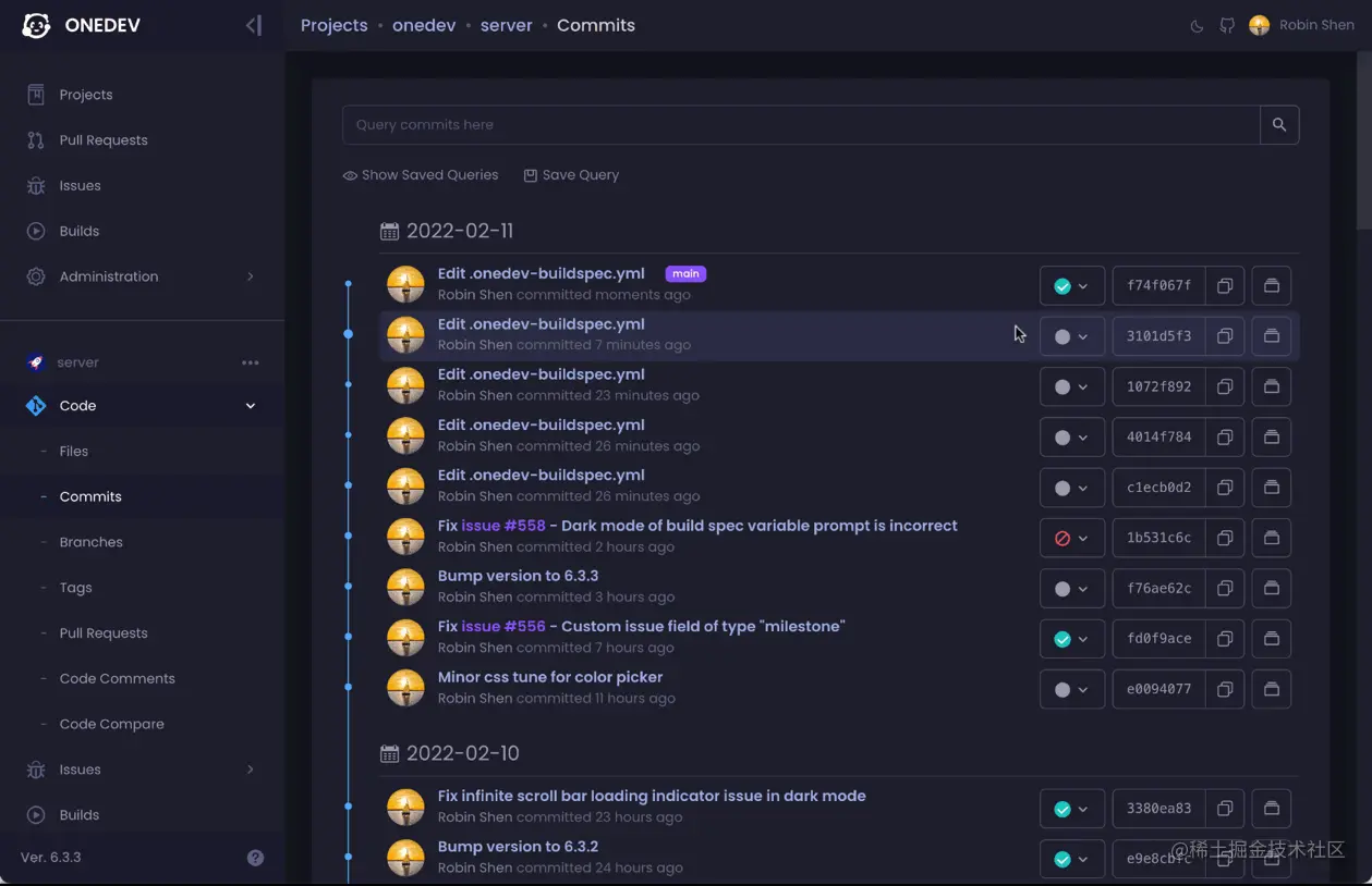 虽然 IDE 也可以做这些事情,但是我们经常需要切换到以前的 commit 搜索(比如某个 issue 对应的 commit ),这在 IDE 里需要切换工作环境有点麻烦,也有点慢,不如直接打开 onedev 搜索方便。