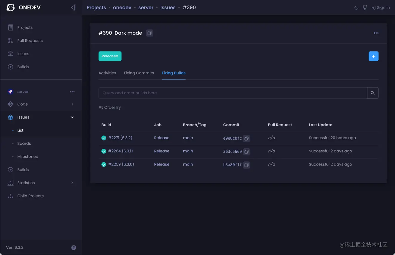 这里 GitHub/GitLab 的简单的 open/close 的状态完全不能满足我们的需求,特别是牵涉到客户创建的 issue 时。如果开发人员在 commit 代码时 close 相关 issue ,客户得到通知会以为这个问题已经解决,于是会问我们应该更新到哪个发行版;而如果在产品发布时 close 相关 issue ,测试人员在拿到测试版时也很困扰,因为相关 issue 还是 open 状态,不知道该测试哪些 issue 。为解决这个问题,我们定制了四个 issue 状态:open ,committed ,test ready 和 released 。当开发人员 commit 代码时,相关 issue 自动迁移到 committed 状态;当包含这些 commit 的代码被构建并部署到测试环境中时,相关 issue 自动迁移到 test ready 状态,并通知 QA ,QA 可以在 issue 的详情页面里了解部署到了哪个测试环境;当测试通过创建发行版时,相关 issue 自动迁移到 released 状态,并通知客户,客户在 issue 的详情页里可以得知关联的发行版。