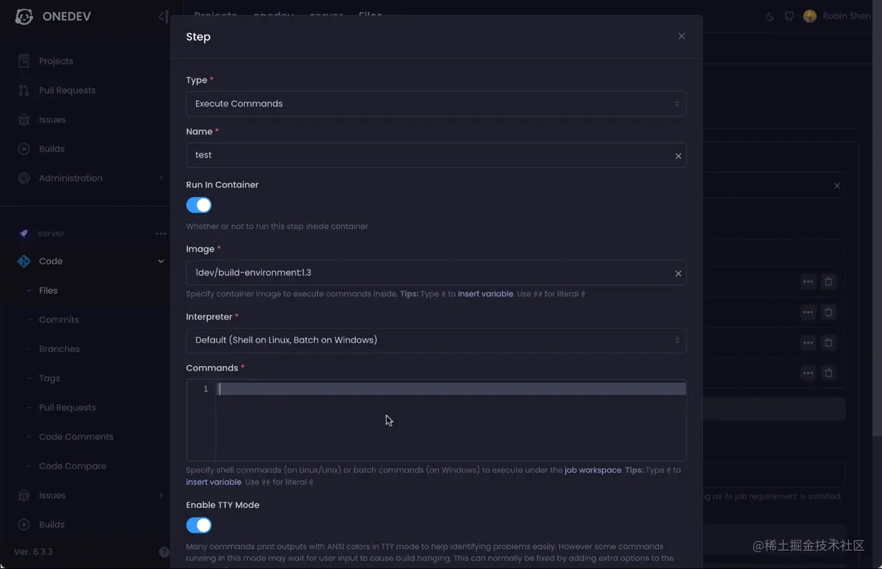 CI/CD 是花精力最多的部分了,虽然 CI/CD 的定义也是以 Yaml 文件的方式存储在仓库中,但提供了 UI 来生成该文件,用户无需了解任何相关语法即可进行配置。