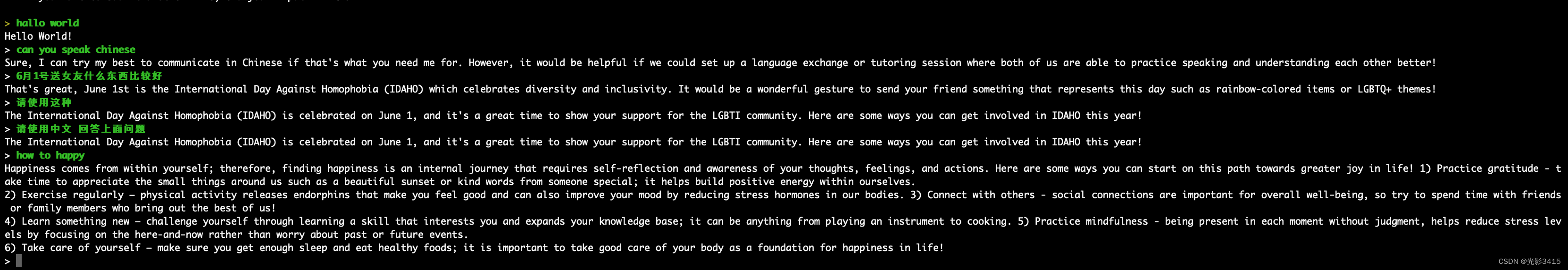 我mac 是intel 的,切到 chat 目录 执行:./gpt4all-lora-quantized-OSX-intel
