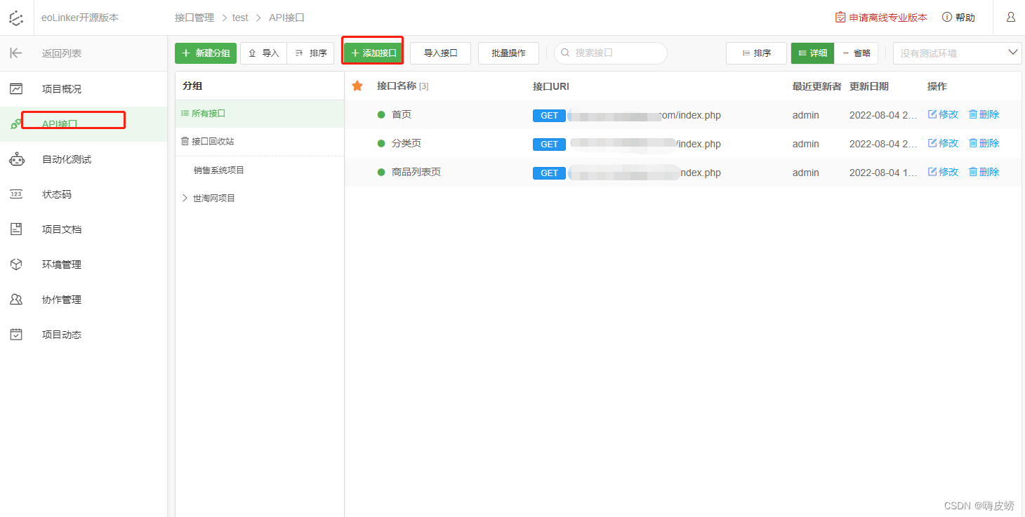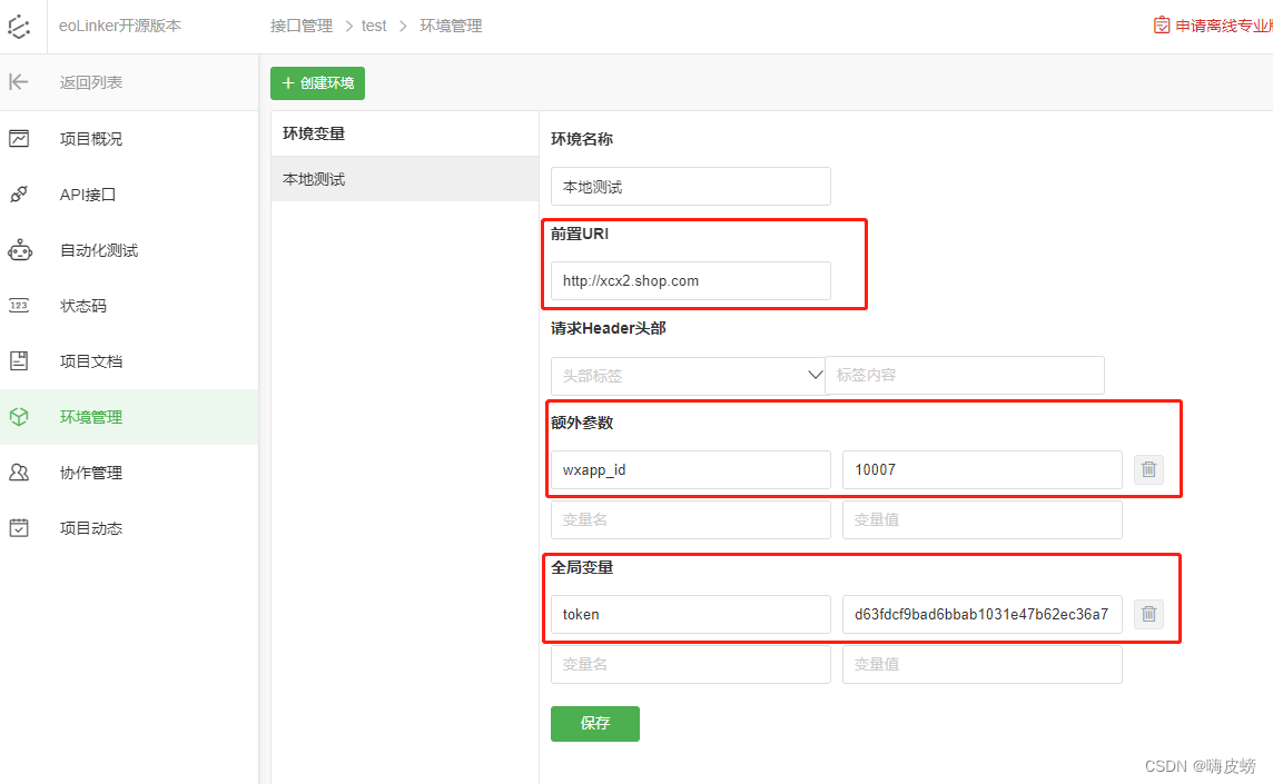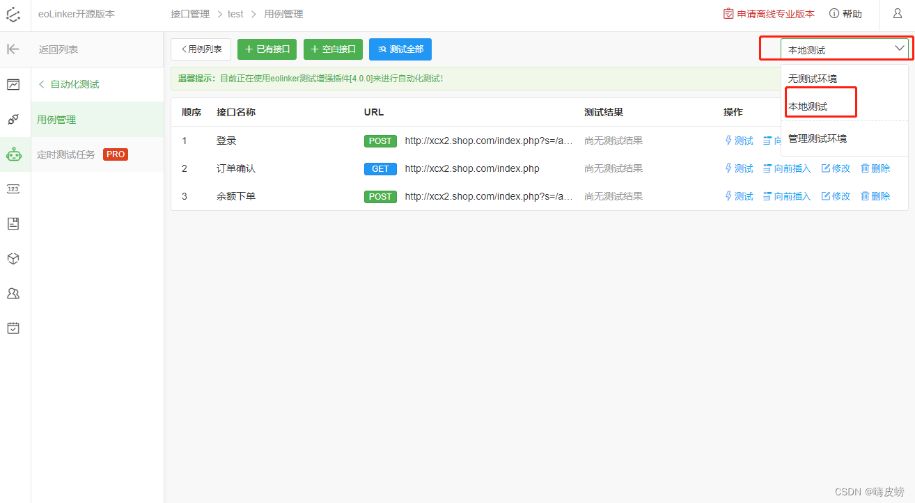 关于【eolinker4.0开源】API文档功能和API测试功能的搭建、搭建API文档、使用自动化测试、测试环境切换