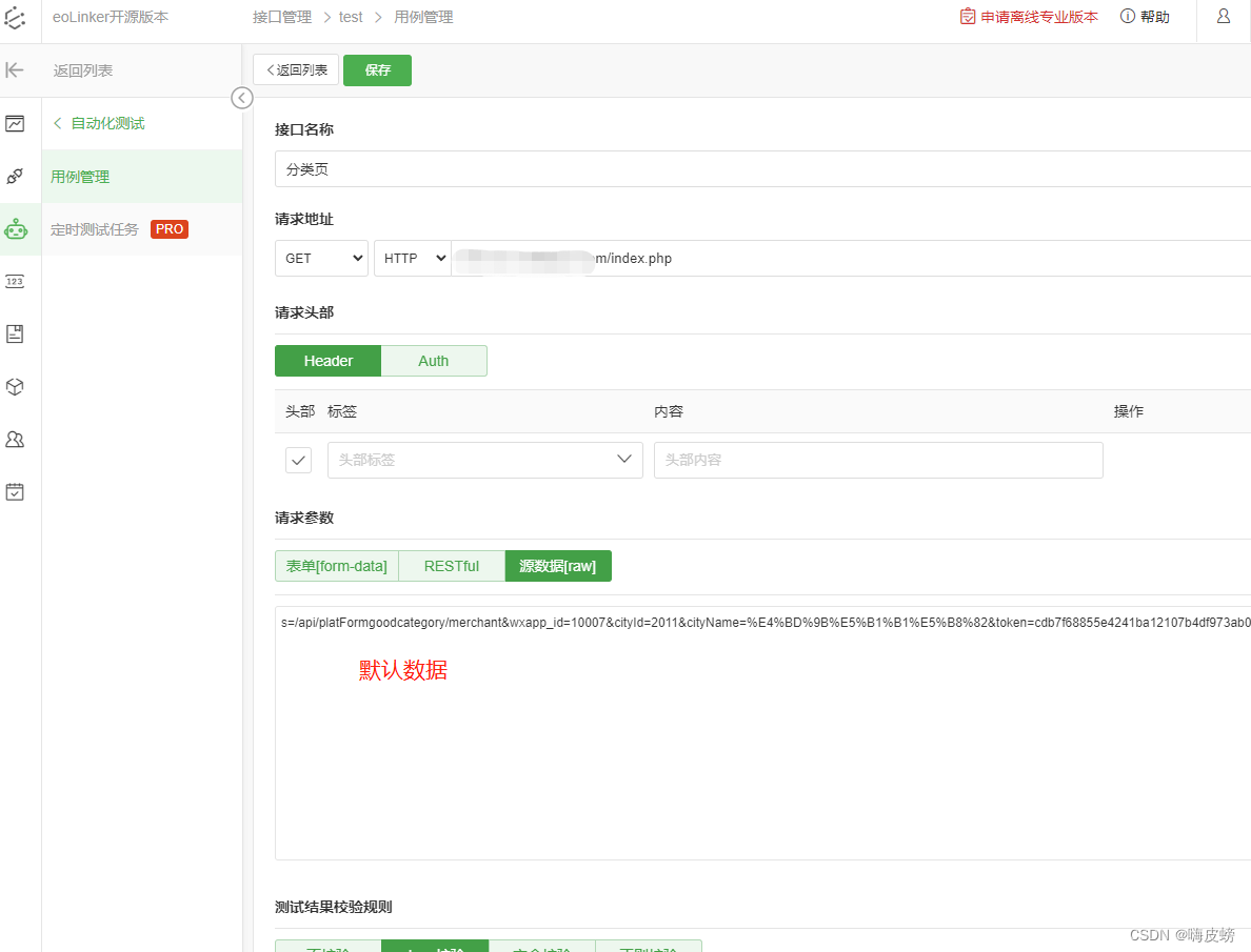 在自动化测试的时候,GET提交使用 源数据的方式可以正常提交,POST提交时使用源数据时,后端无法获得数据,使用表达的时候又可以。可能源数据不支持POST提交