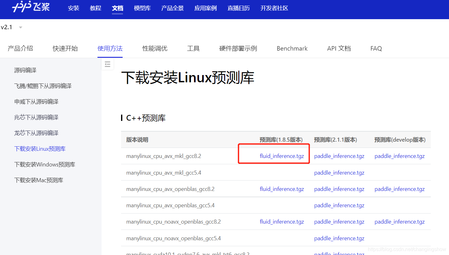 ①下载Linux预测库,官方提供的地址有问题不能直接下载,正确的下载地址是: