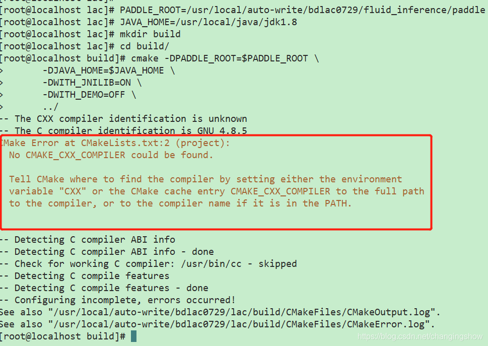 流程就是拉代码,然后进入指定目录,设置paddle目录和jdk目录,编译过程中出现如下报错。