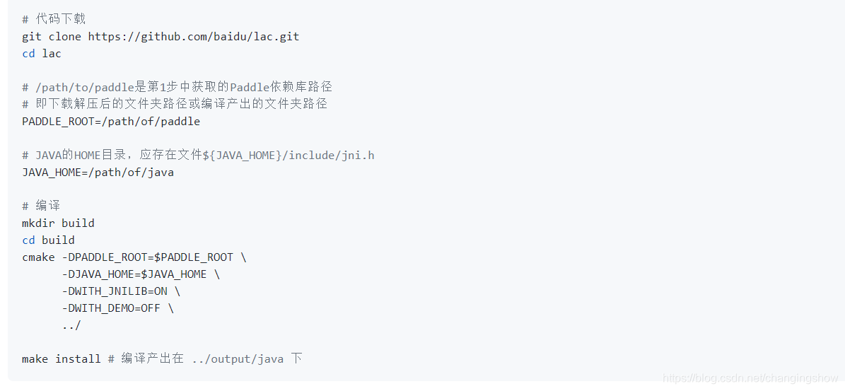 5、官方提供的编译过程文档地址:https://github.com/baidu/lac/tree/master/java