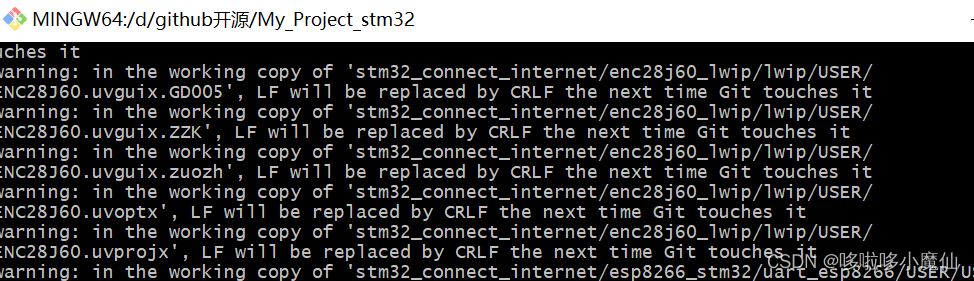 在初始化上传,能上传到远程仓库,但是有三个warning