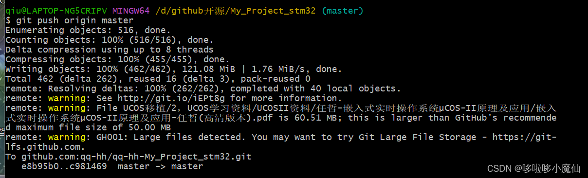 今天在push代码的时候,上传不了,不知道是不是里面有PDF文件的原因,删除之后也无法上传,报错如下: