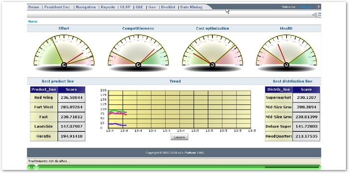 SpagoBI 提供一个基于J2EE的框架用于管理BI对象如报表、OLAP分析、仪表盘、记分卡以及数据挖掘模型等。它提供的BI管理器能 够控制、校验、验证与分发这些BI对象。 SpagoBI特性包括支持Portal、report、OLAP、QbE、ETL、dashboard、文档管理、元数据管理、数据挖掘与地理信息分析。