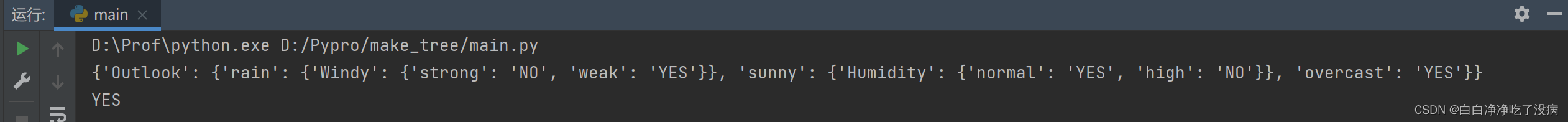print(id3.tree) # 输出决策树
