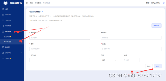 - 好友推送配置完成后每天这个时间段都会发送指定消息给这个好友,你也可以自定义其它模板消息。