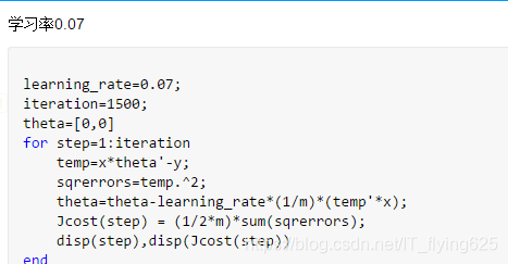 theta=theta-learning_rate*(1/m)*(temp'*x);