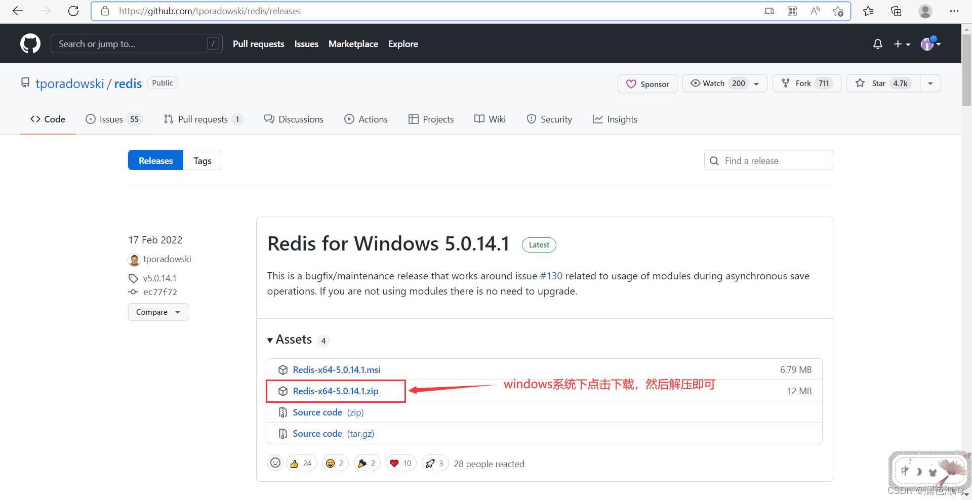 首先打开这个github网站 https://github.com/tporadowski/redis/releases