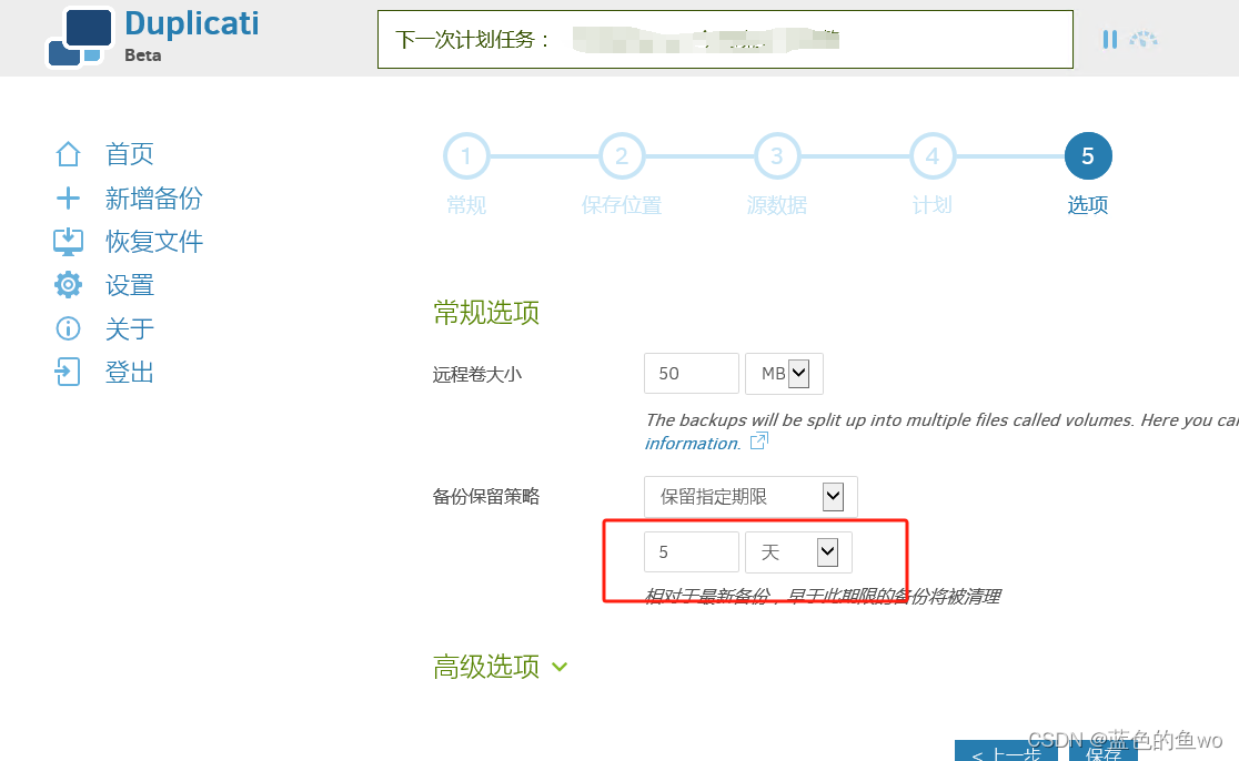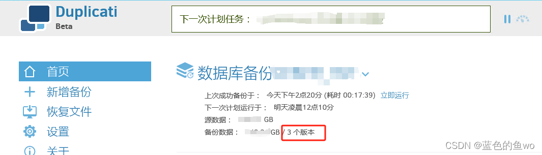 4、再次启动duplicati服务,执行备份计划,观察备份情况,保留版本是否缩减。