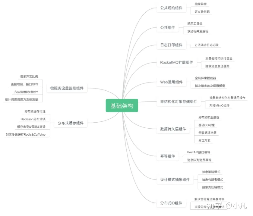 - 完成基础组件抽象,规约、缓存、幂等、分布式 ID、数据持久层、脱敏以及日志等底层组件库。