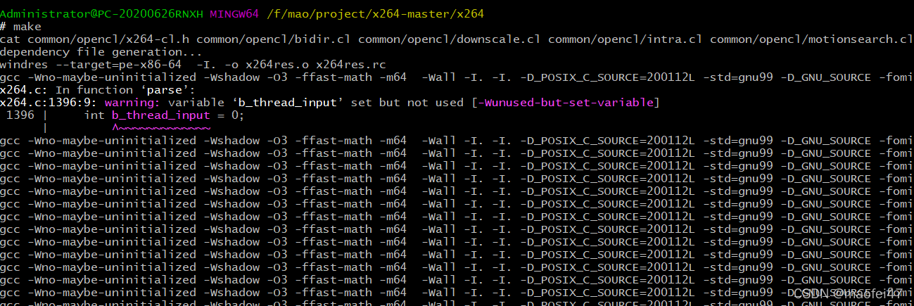使用MSYS编译X264(X264基于GNU,法国开源爱好者在Linux下完成,且利用了C+汇编调用AVX、MMX指令优化)