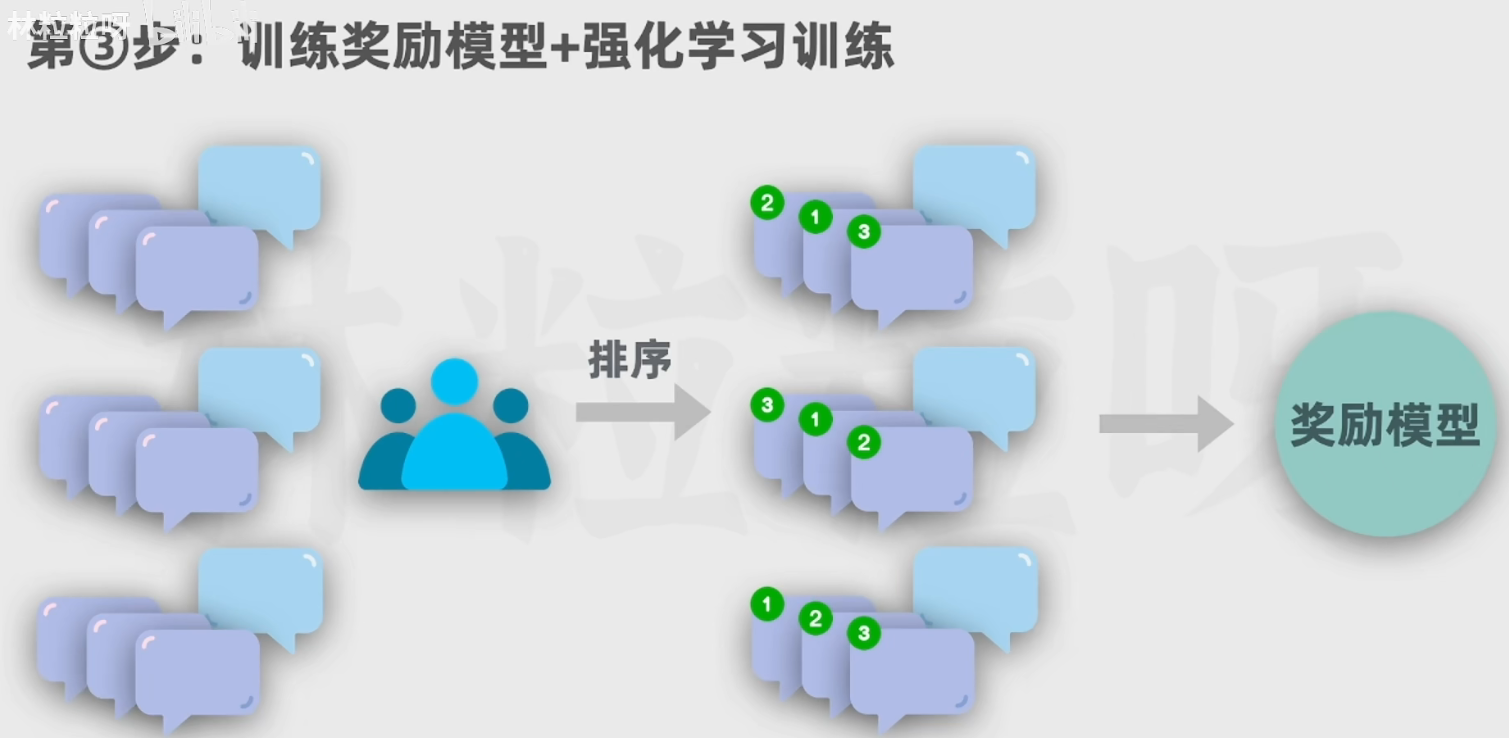 让第二步得到的SFT模型对问题生成多个回答,人类标注员对回答进行排序,得到排序数据,进而用于训练奖励模型