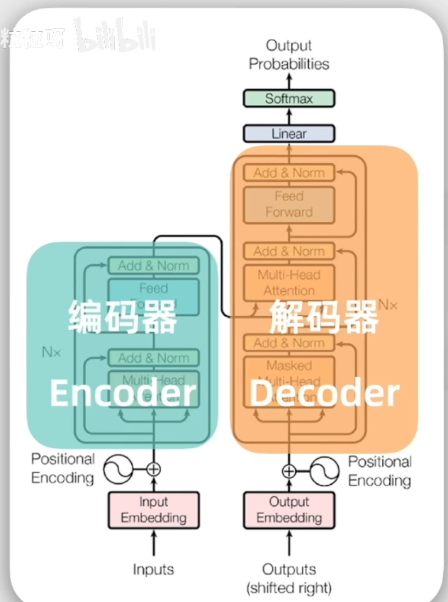 内部有两个多头自注意力层数,其中一个是针对(输出序列),还有一个是针对输入序列(来自编码器的输出)。