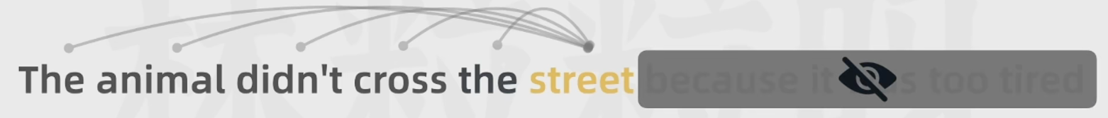 解码器的多头自注意力层只关注前缀(只使用当前词以及前面的词作为上下文 ),称为带掩码的多头自注意力层: