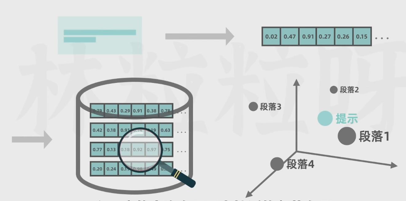 当我们提出问题的时候,这个问题也会转化为向量,然后进入向量数据库中查找与该向量最为接近的段落向量。