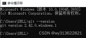 安装完成后,在cmd命令行输入git --version 可以查看到git的版本: