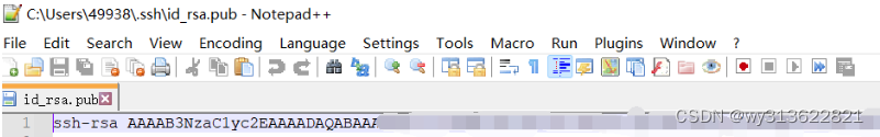 进入该目录用notepad++等文本编辑器打开,即可看到SSH公钥,之后将会用到这个SSH公钥。