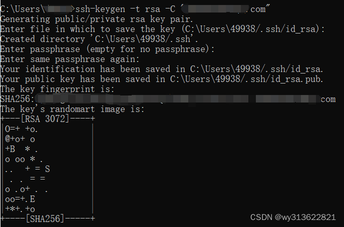按照提示完成三次回车,即可生成ssh key。如下图: