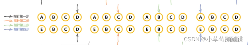 整个优化采用双指针的方式,也就是在新老节点的头部和尾部分别插入2个指针,在头部和尾部都有一个指针。在比对的过程中,采用的是有一方头尾指针重合的话,就意味着节点遍历结束。这个时候就会终止 diff 算法。