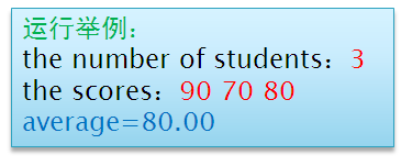 本关任务:编写一个程序,输入学生人数和每个人的成绩,计算平均成绩。 ######注意:当输入的学生人数小于等于0时,输出平均成绩为0分! 例如: