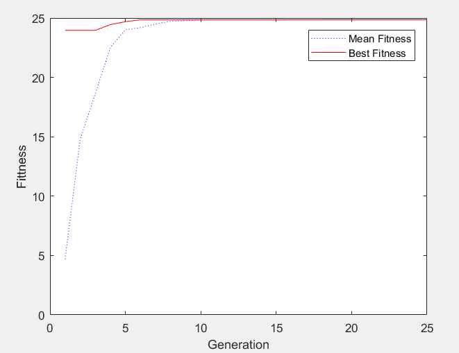 [x, endPop, bpop, trace] = ga([0 9],'fitness',[],initPop,[1e-6 1 1],'maxGenTerm',25,...
