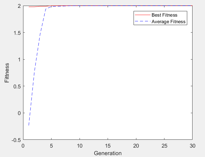 legend('Best Fitness', 'Average Fitness')