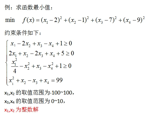 整数约束如上所示,整数规划和非线性等式约束不能同时存在