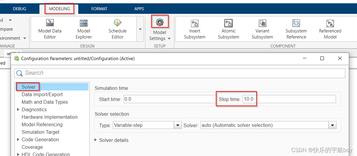 本篇文章介绍建模时的一些基本设置,包括 仿真时间、求解器、数据类型,并对delay模块的特性和使用方法进行介绍。