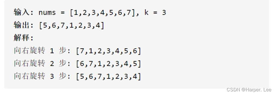 不用三段逆置的方法,重新创建一个数组,后k个旋转在前面,再把前n-k个拷贝到后面去 ,最后再将最终结果拷贝到原来的位置。此时,新创建的N个数组就是为了解决此问题而创建的,它就需要计算空间,空间复杂度就是O(N)。