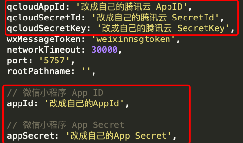 1、下载项目文件在【猫宁一】公众号中回复【源码】,得到下载链接,将项目下载下来并解压2、打开项目文件,编辑server/config.js文件将红框圈出来的地方改成自己的信息(1)qcloudAppId、qcloudSecretId、qcloudSecretKey去哪里找?首先登录自己的腾讯云,点击下面链接:https://console.cloud.tencent.com/capi...