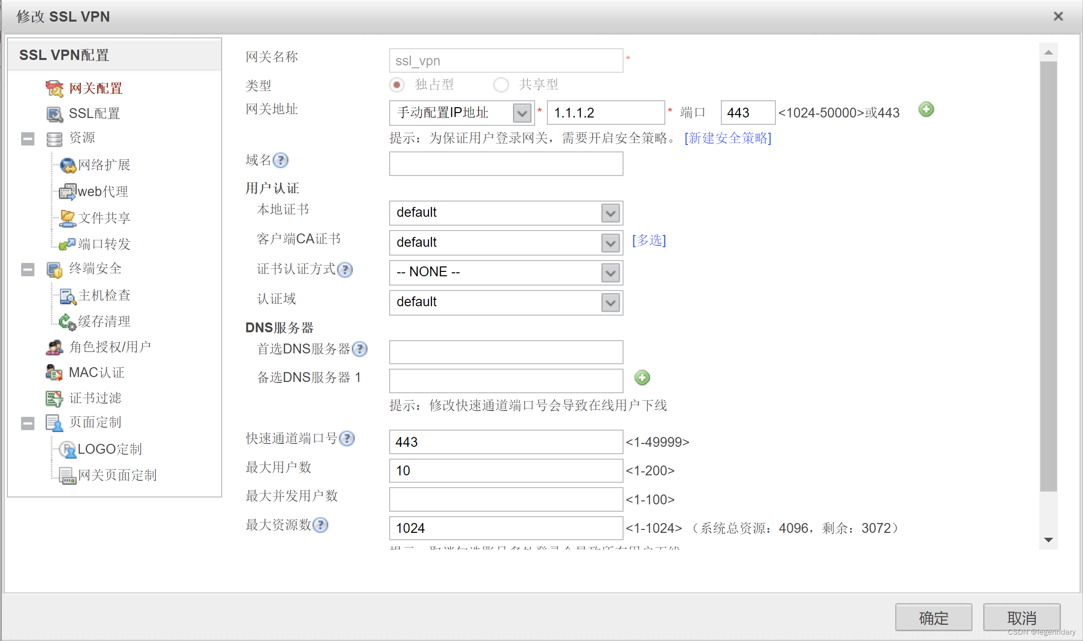 gateway-list 10.0.10.254 //配置该地址池地址的网关地址
