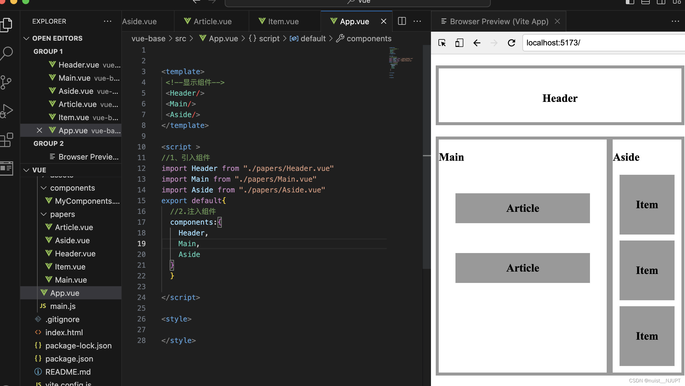 我们先看一下组合式api,准确说就是setup,可以把数据和事件等都卸载setup中,如下: