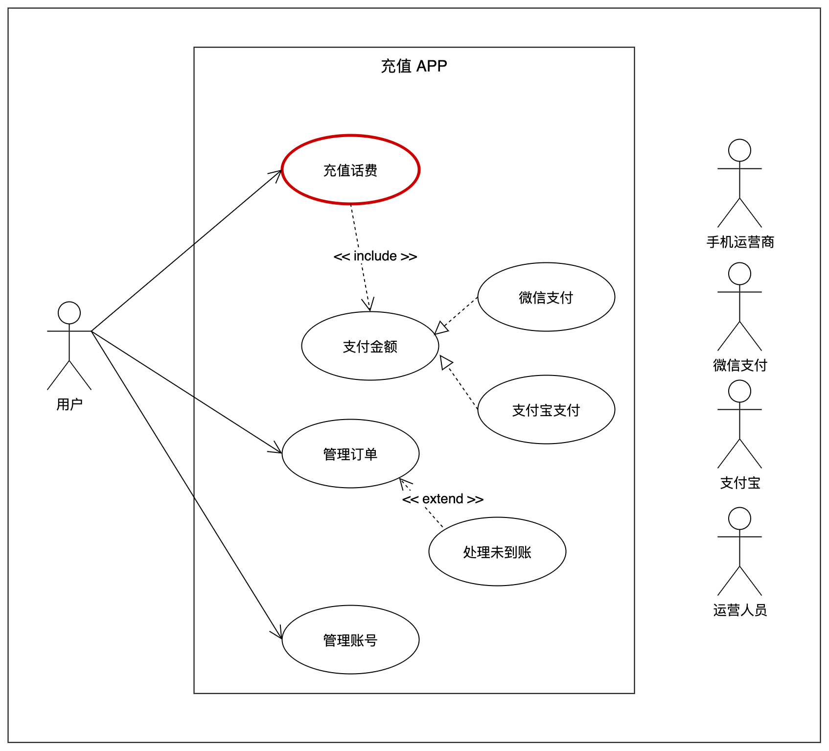 案例中「 充值 APP」 的系统用例图