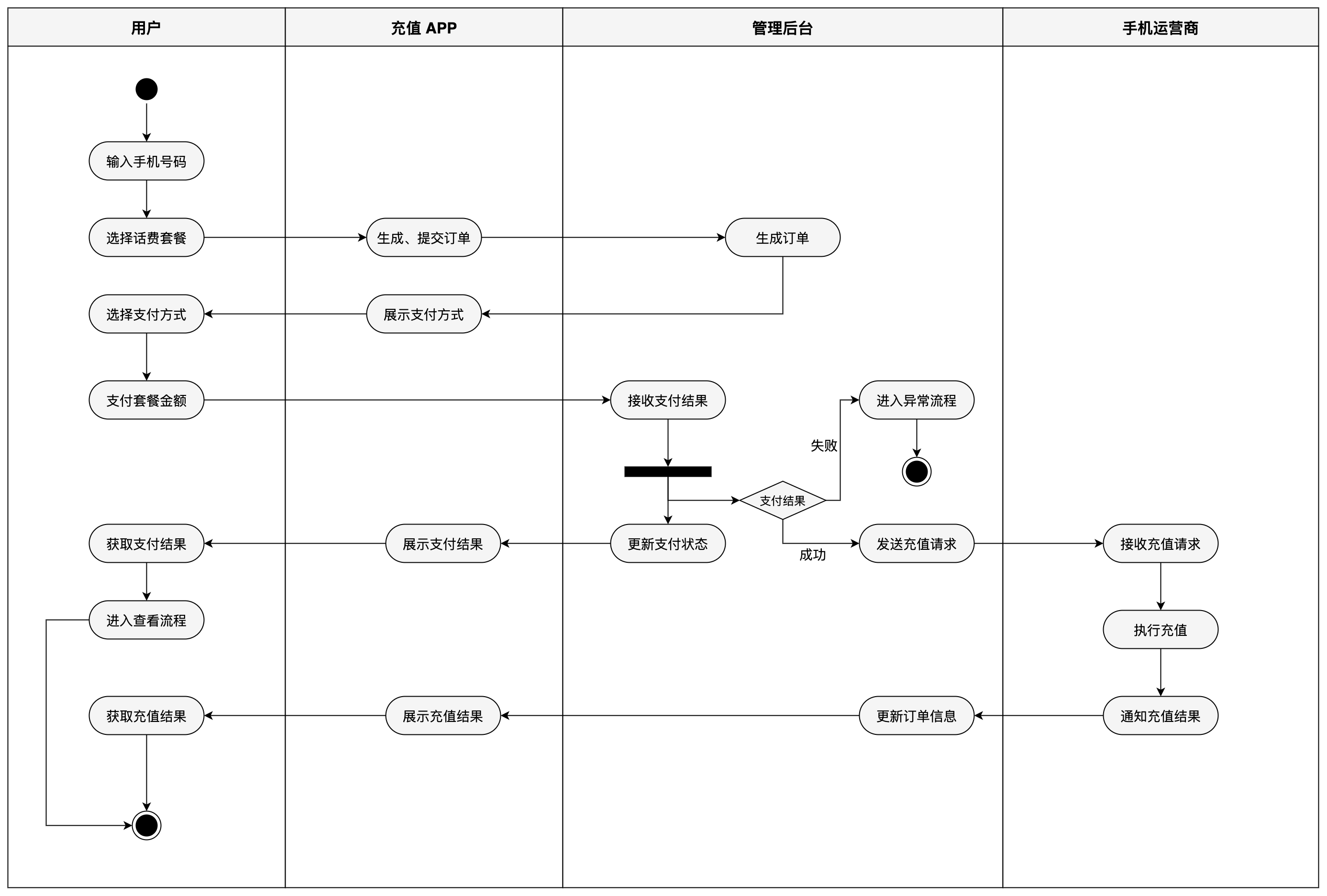 充值 APP 「 充值话费 」用例活动图