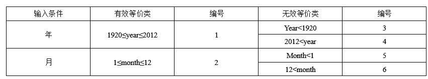 ② 1≤month≤12,列出等价类表并设计测试用例。