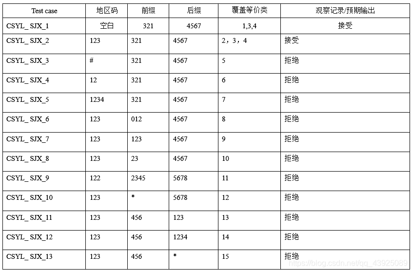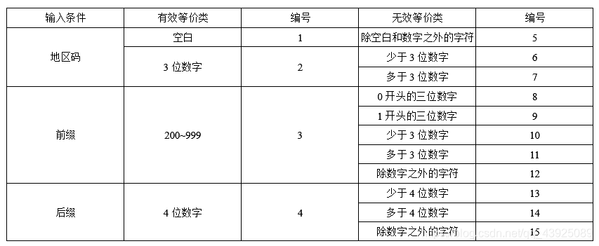 假定被测程序能接受一切符合上述规定的电话号码, 拒绝所有不符合规定的电话号码。