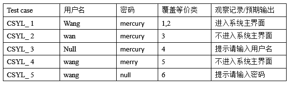 要求:自己制作表格,使用等价类划分法进行测试用例设计。