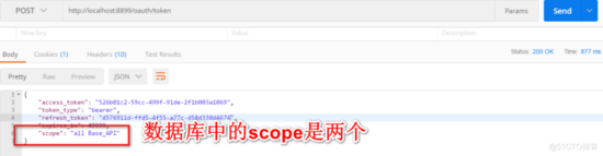 - 使用 admin 用户获取令牌看是否正常, 可以把数据库中scope值更改下,看是不是响应修改后的